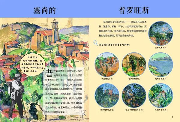 作者是比利時(shí)皇家美術(shù)教師卡特琳?德?杜伍。以每位藝術(shù)大師的生活軌跡為軸線,像講故事一樣向小朋友介紹每一位大師,期間穿插著講述一幅幅的著名作品,讓孩子們?nèi)娴牧私獾剿囆g(shù)大師創(chuàng)作時(shí)的思想、生活以及這些名畫背后的有趣故事。同時(shí),根據(jù)名畫設(shè)置了很多的小游戲、可以讓孩子們在閱讀的同時(shí)去觀察、思考和創(chuàng)造,這就為知識性閱讀增添了樂趣。